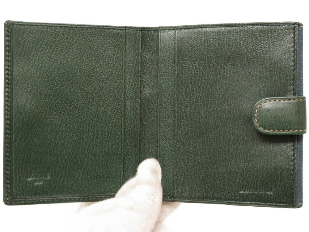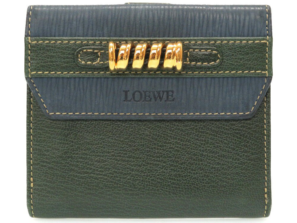 美品 ロエベ ツイスト バイカラー レザー グリーン 二つ折り財布 財布 青 緑 0102 【中古】 LOEWE